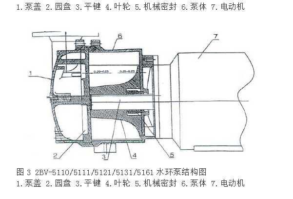 2BV型水環(huán)式真空泵的結(jié)構(gòu)如圖2、圖3,圖4所示