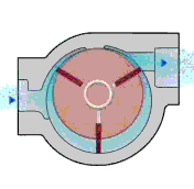 當空氣通過進氣口進入時,空氣被困在葉片之間。隨著轉子旋轉,截留的空氣量逐漸減少。